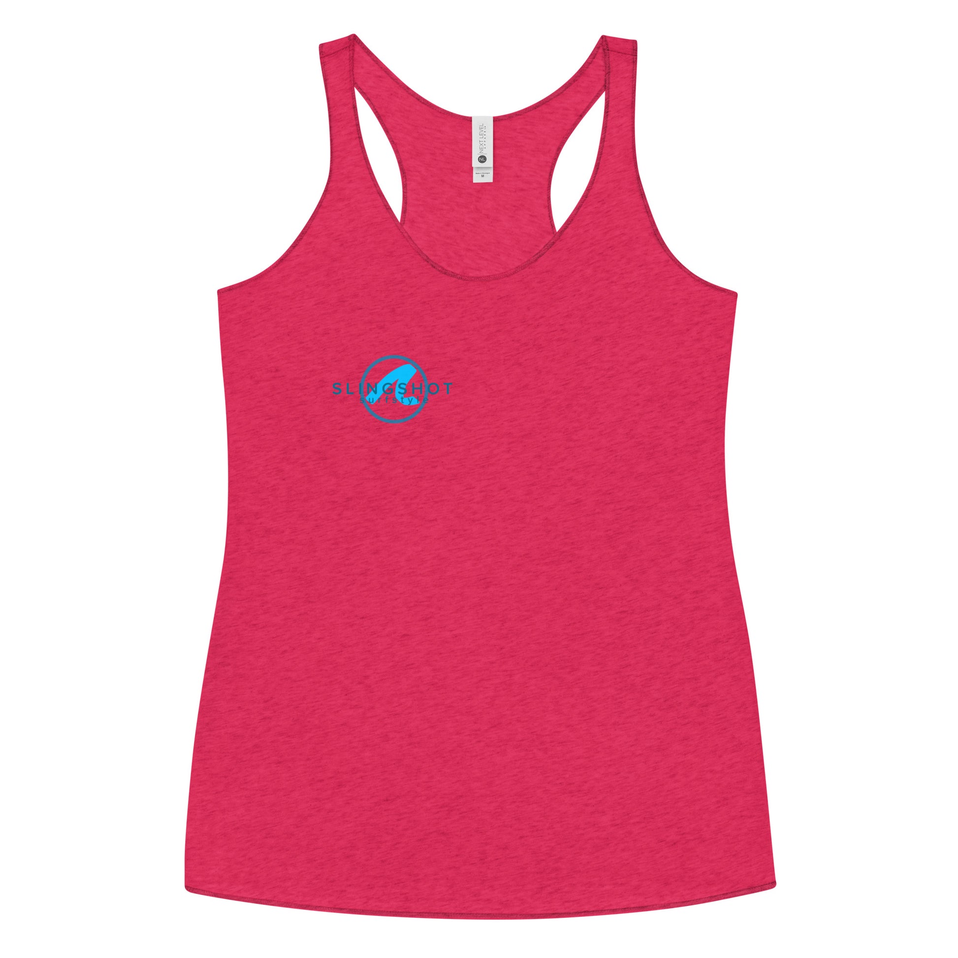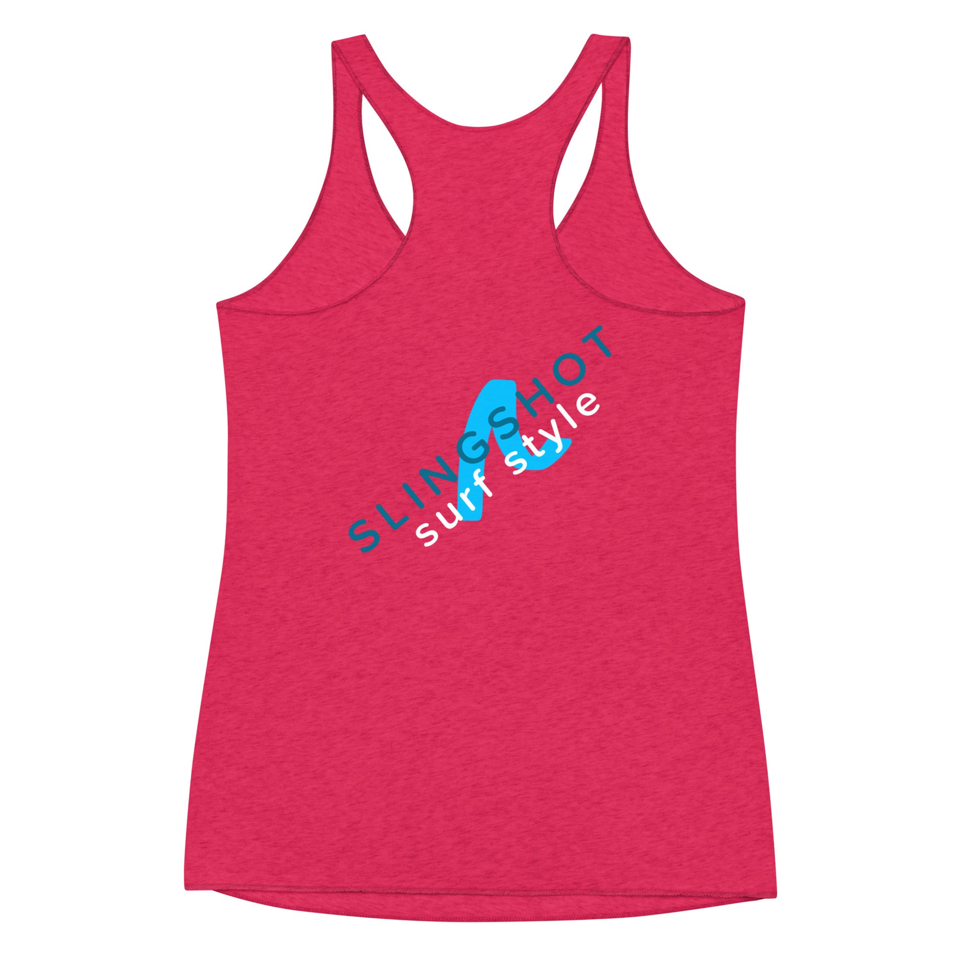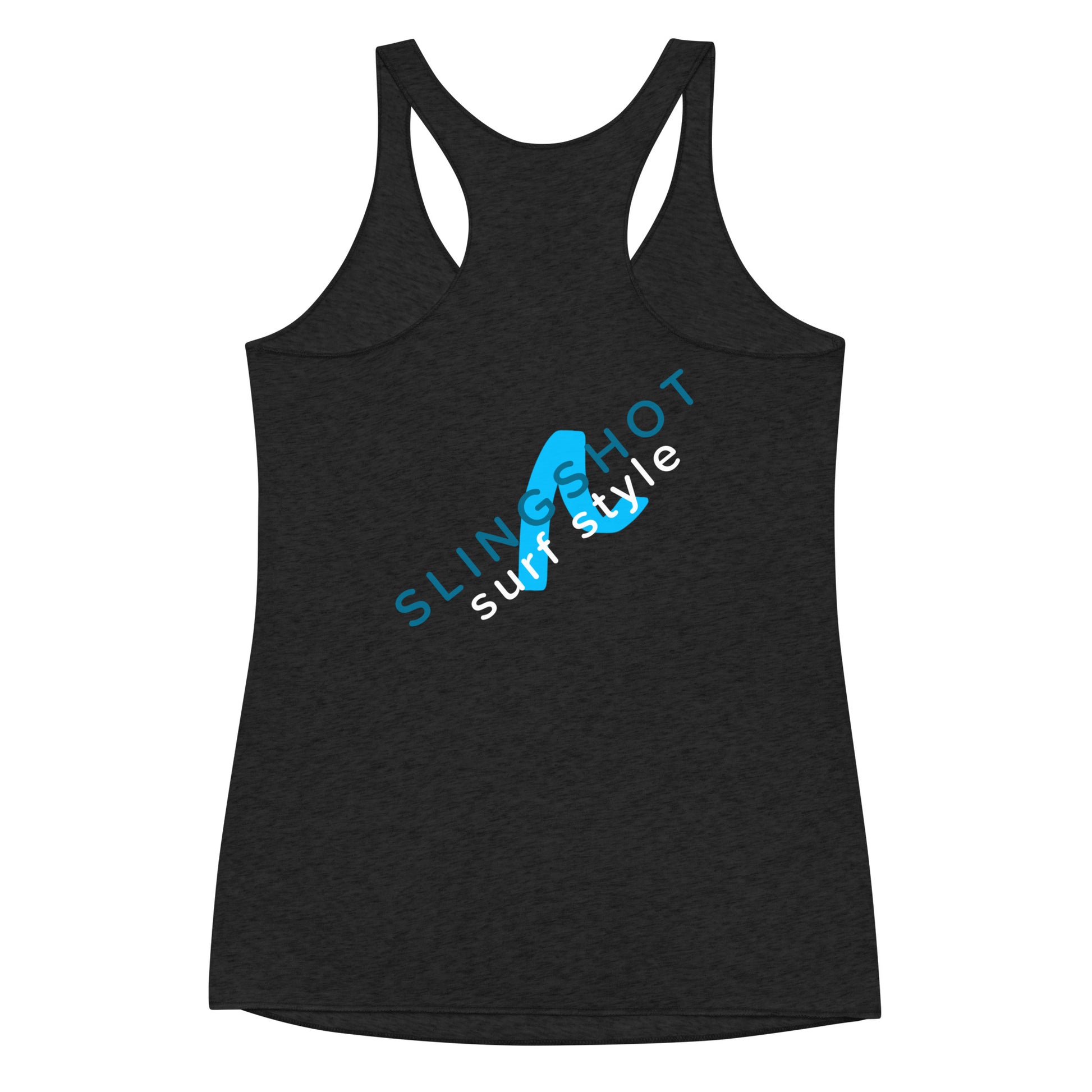 This racerback tank is soft, lightweight, and form-fitting with a flattering cut and raw edge seams for an edgy touch.