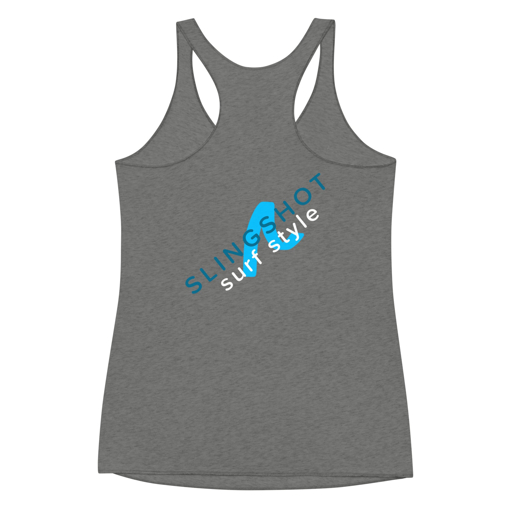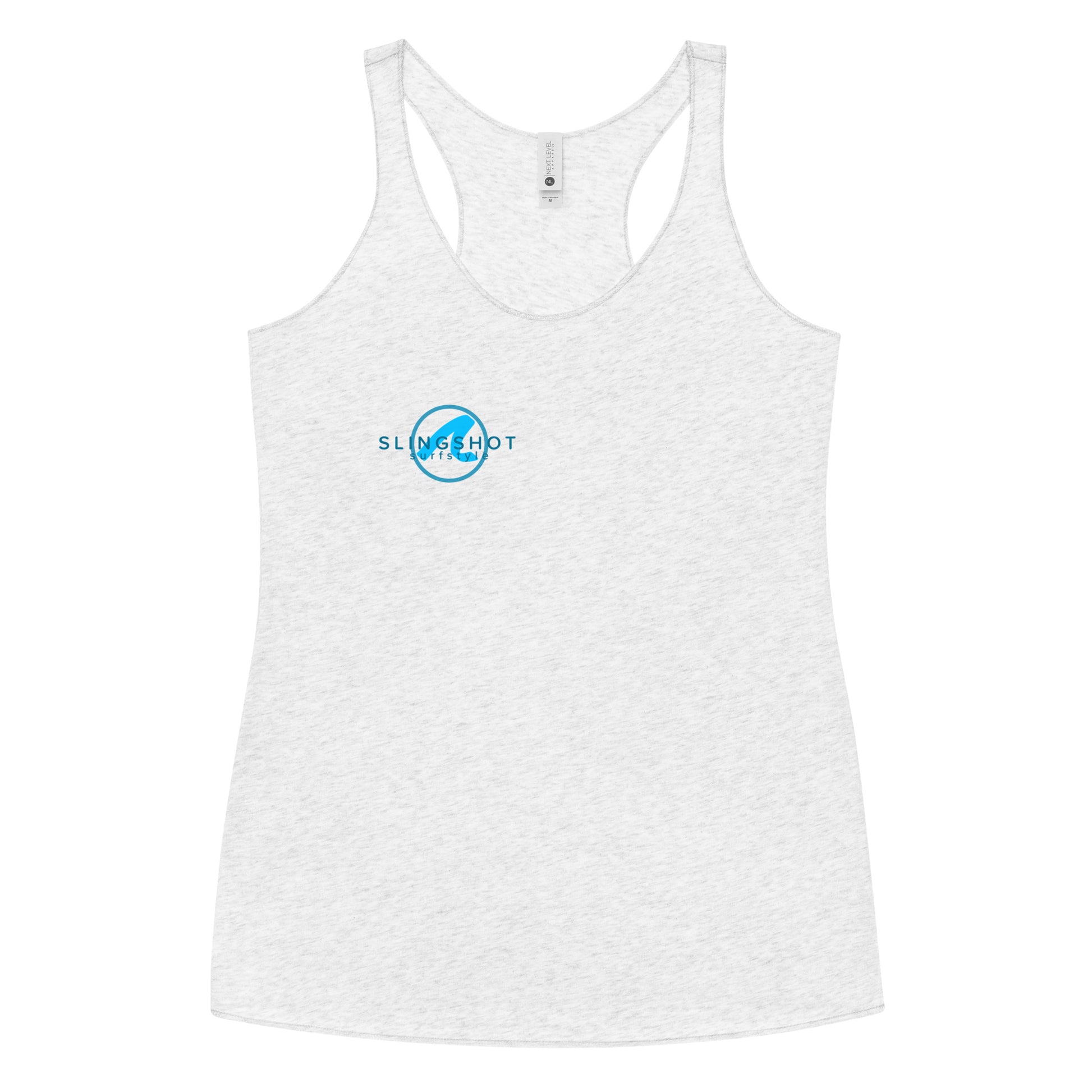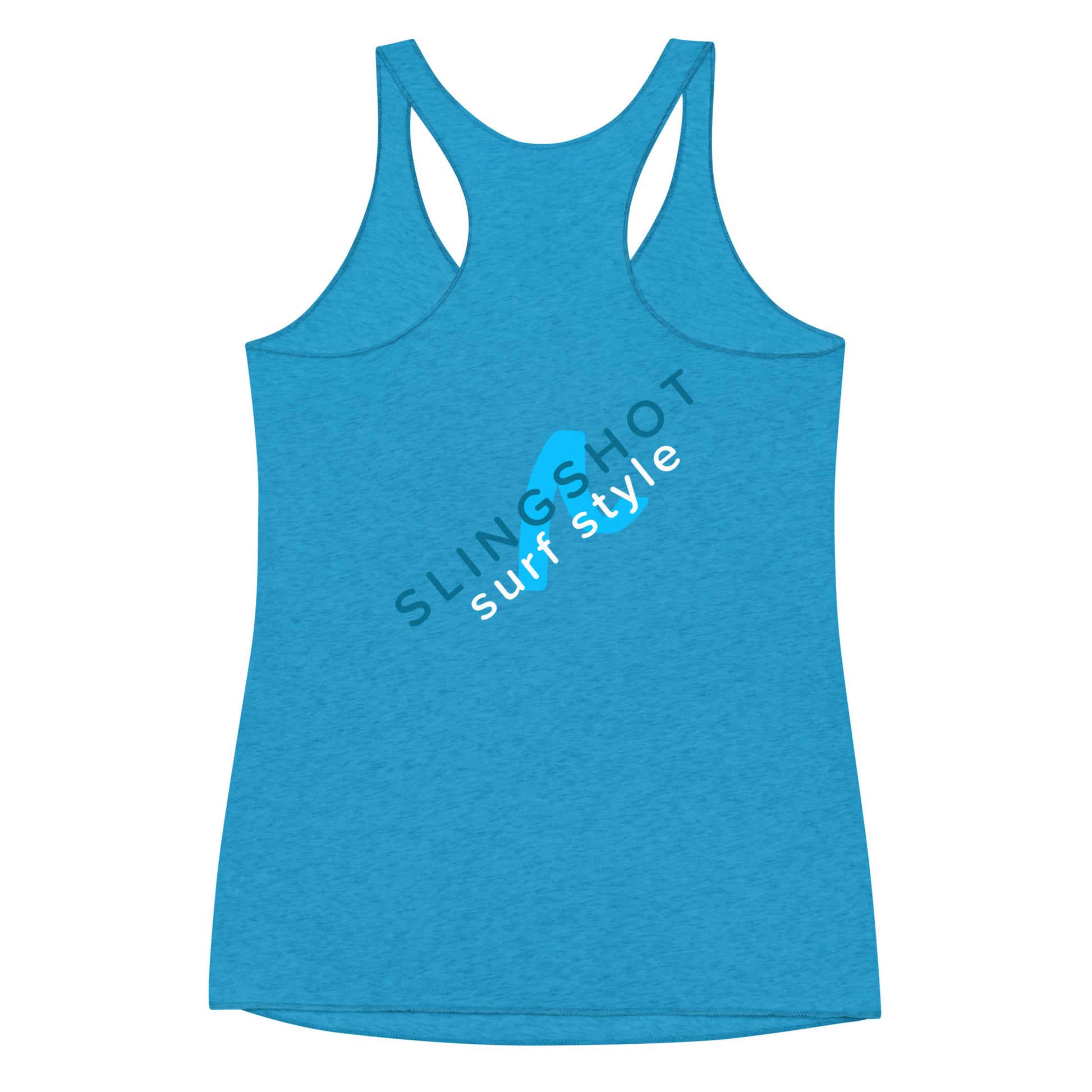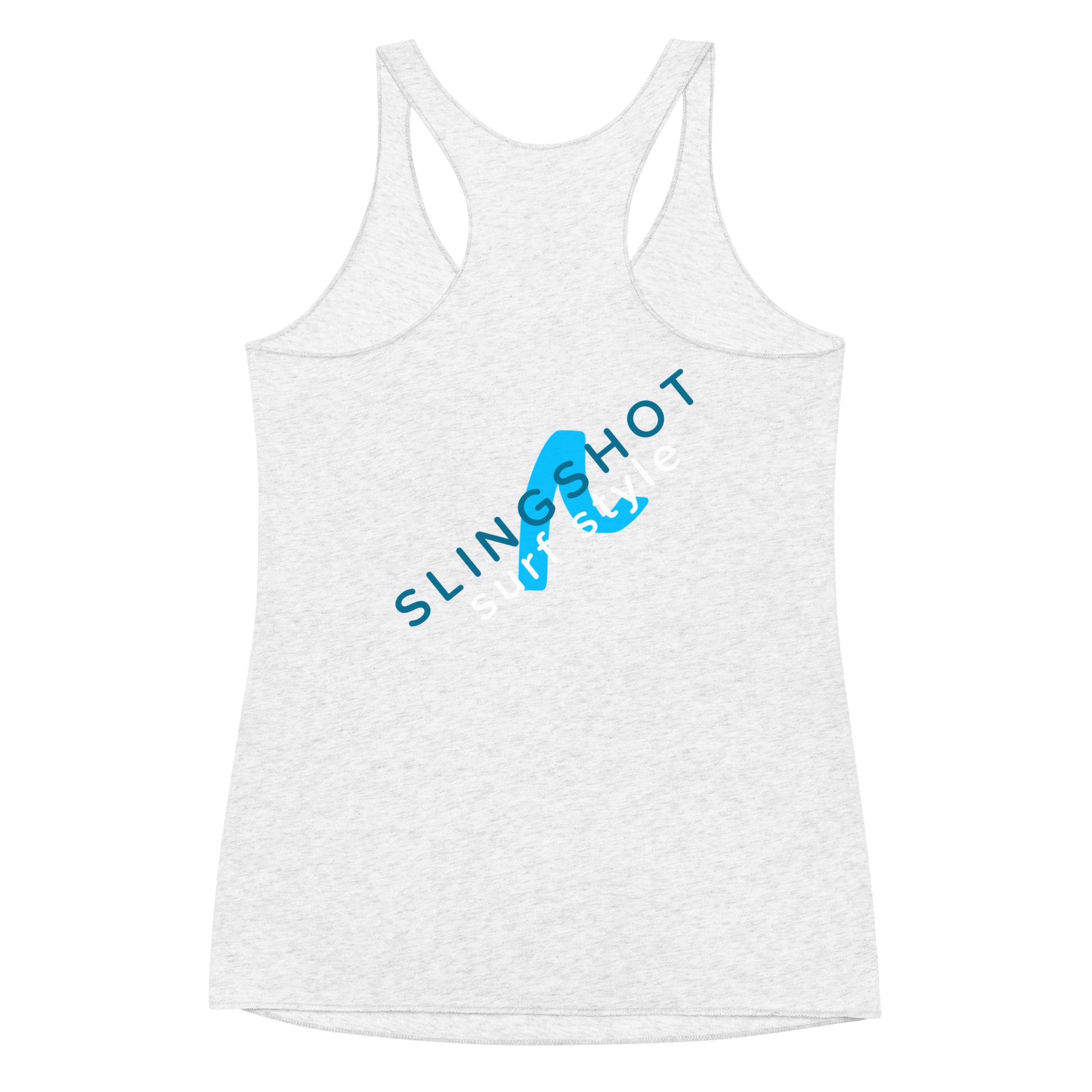 This racerback tank is soft, lightweight, and form-fitting with a flattering cut and raw edge seams for an edgy touch.